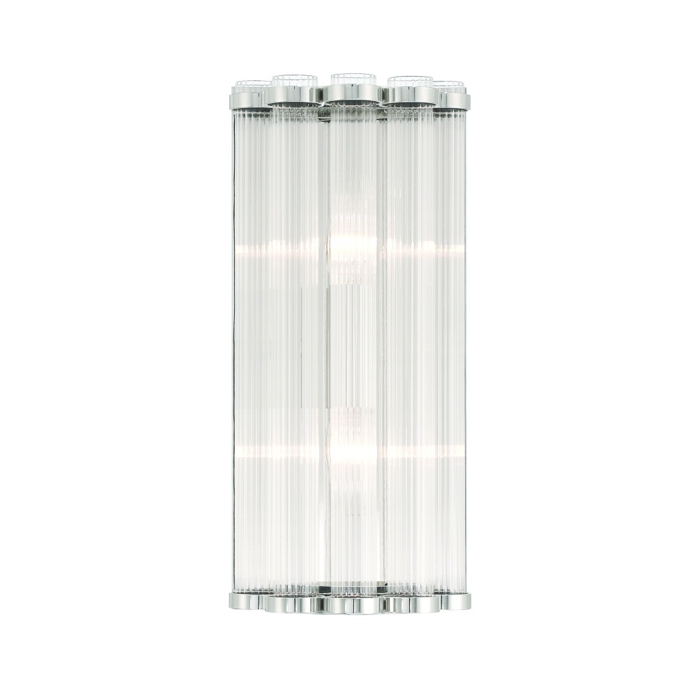 A regiment of ribbed cylinders, linked together at the top, encircle the central light sources to soften and diffuse, unveiling a stately, transitional allure that lends charm to living, entry and dining spaces.