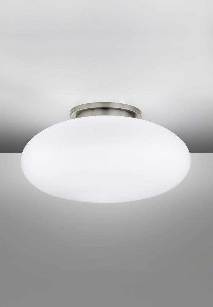 MEDIUM HALOGEN CEILING FIXTURE, SATIN NICKEL WITHSATIN WHITE GLASS