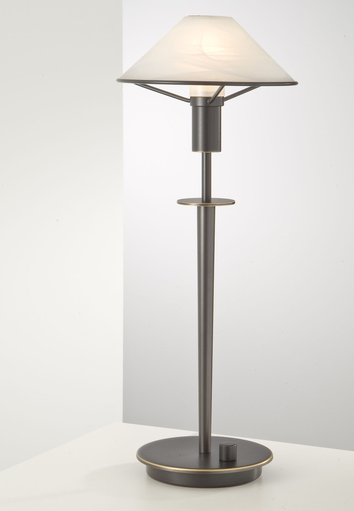 HALOGEN TABLE LAMP, HAND-BRUSHED OLD BRONZE WITH ALABASTER WHITE GLASS