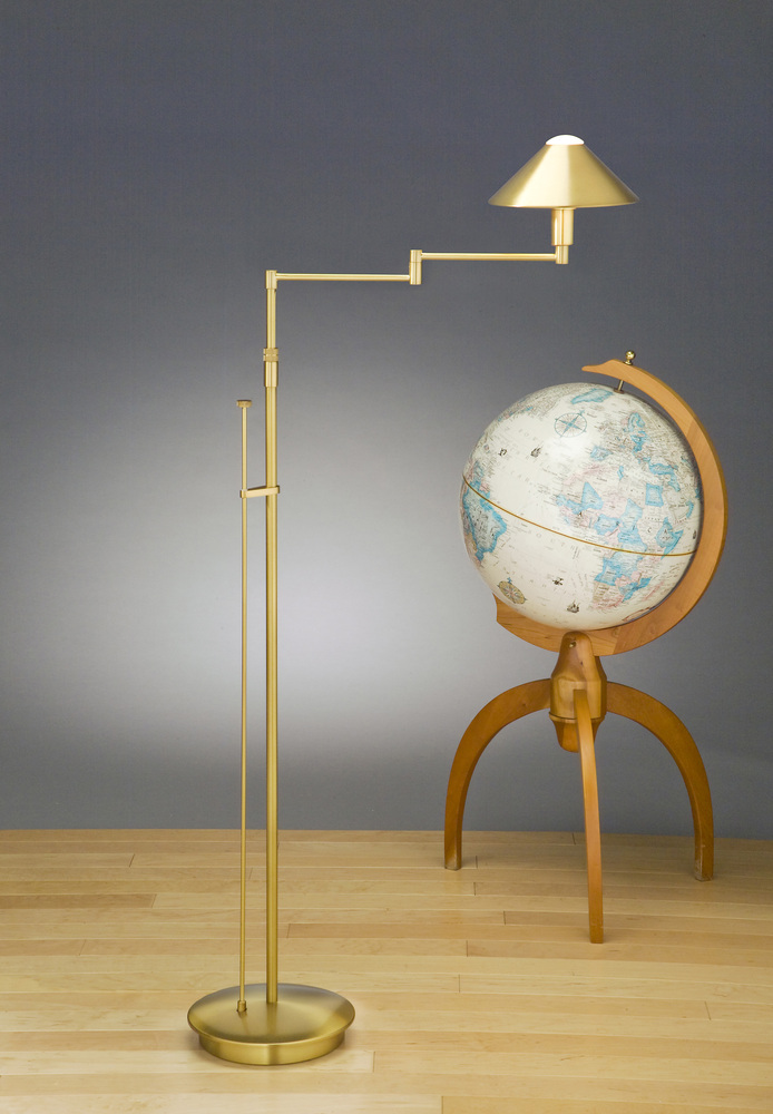 HALOGEN SWING-ARM FLOOR LAMP, ANTIQUE BRASS