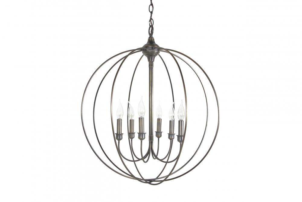 Large Hanging Circle Chandelier Dark Antique Brass 6 Candelabra Sockets