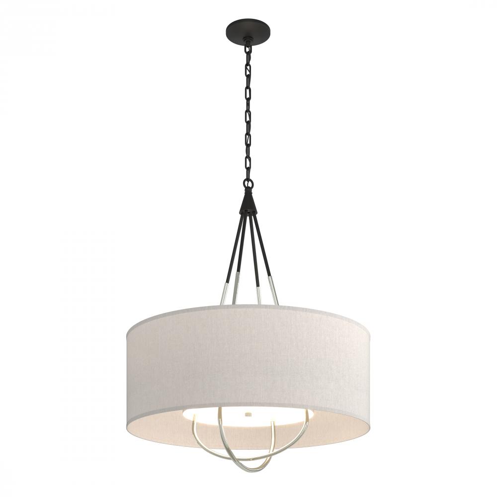 Refinement of materials and purity of line combine to make the Loop Pendant an elegant and versatile choice. Explore the many options this fixture offers—select a base finish for the canopy and chain, an accent finish for the intercrossed loops, and multiple outer shade color choices. A white inner shade gracefully diffuses the light while providing a tailored detail.