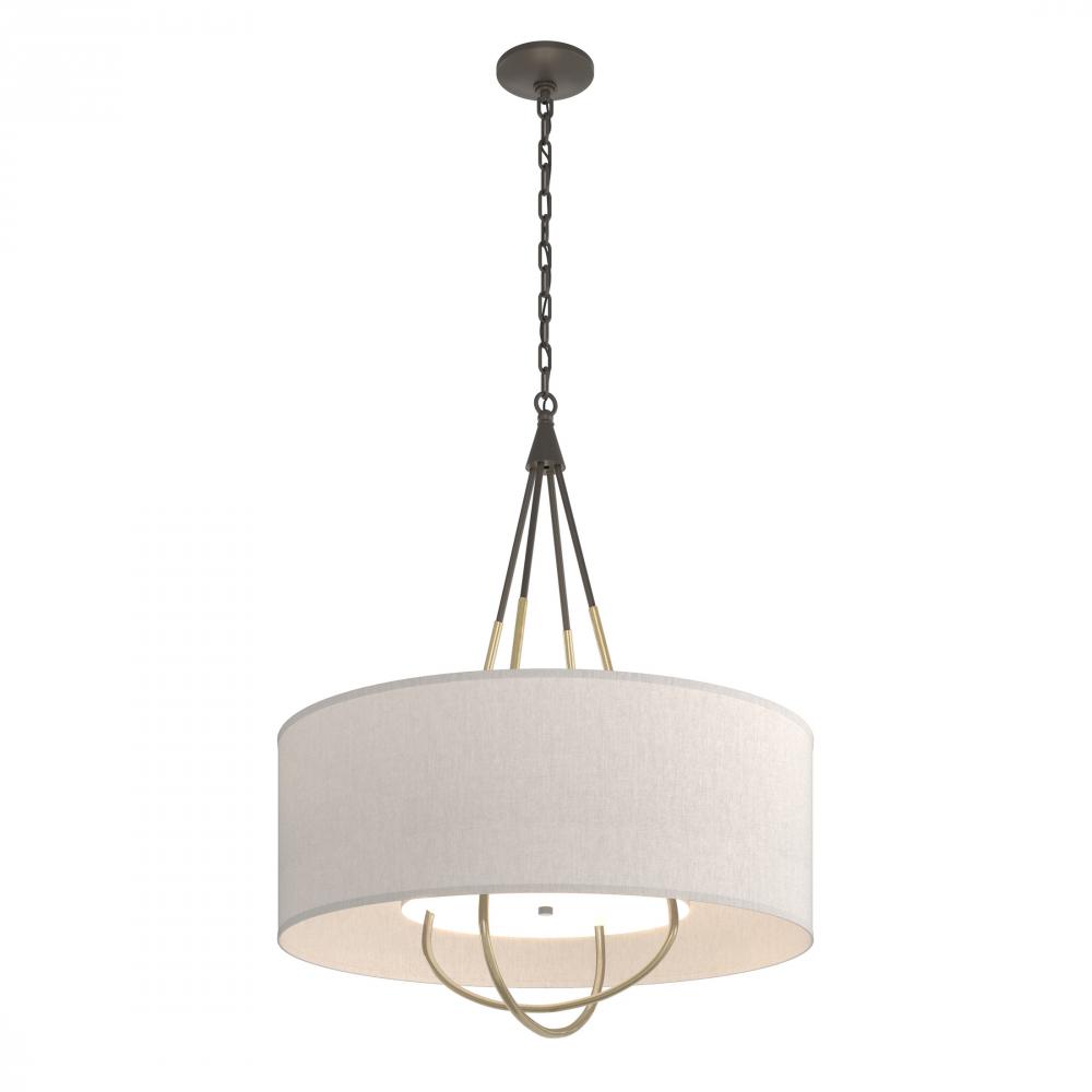 Refinement of materials and purity of line combine to make the Loop Pendant an elegant and versatile choice. Explore the many options this fixture offers—select a base finish for the canopy and chain, an accent finish for the intercrossed loops, and multiple outer shade color choices. A white inner shade gracefully diffuses the light while providing a tailored detail.