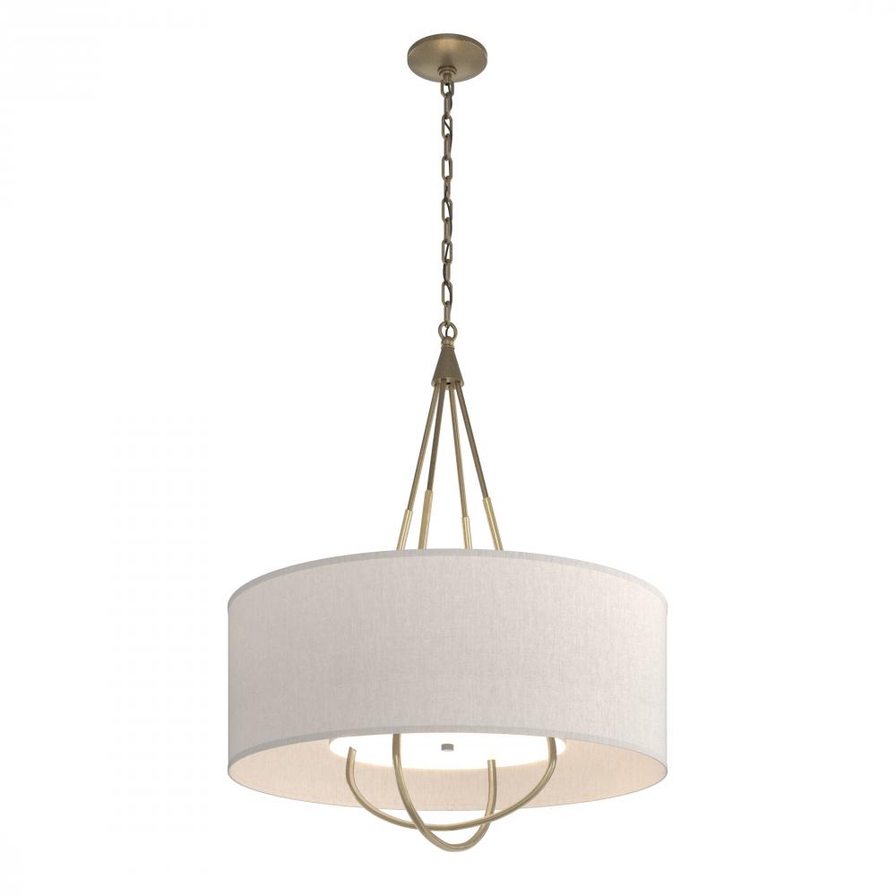 Refinement of materials and purity of line combine to make the Loop Pendant an elegant and versatile choice. Explore the many options this fixture offers—select a base finish for the canopy and chain, an accent finish for the intercrossed loops, and multiple outer shade color choices. A white inner shade gracefully diffuses the light while providing a tailored detail.
