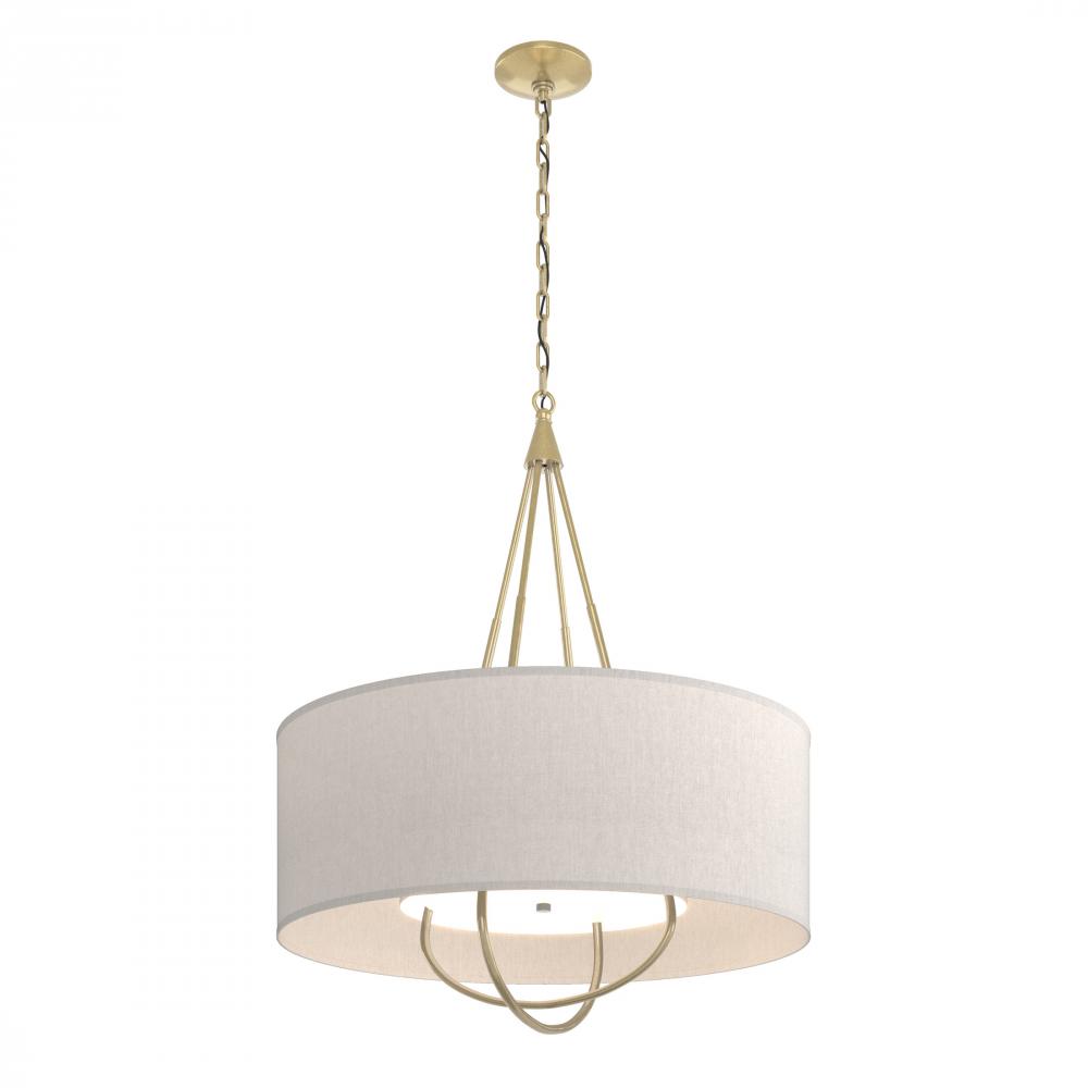 Refinement of materials and purity of line combine to make the Loop Pendant an elegant and versatile choice. Explore the many options this fixture offers—select a base finish for the canopy and chain, an accent finish for the intercrossed loops, and multiple outer shade color choices. A white inner shade gracefully diffuses the light while providing a tailored detail.