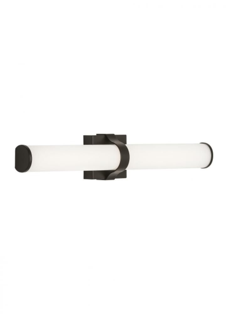 A sleek metal band and matching die cast end caps of the Lynk 24 LED bath vanity light from Visual Comfort Modern embrace a rounded acrylic shade to seamlessly blends traditional and contemporary design. Offered in modern finishes. Can be mounted horizontally or vertically. High CRI LEDs are used to provide the superior light quality necessary for vanity applications.
