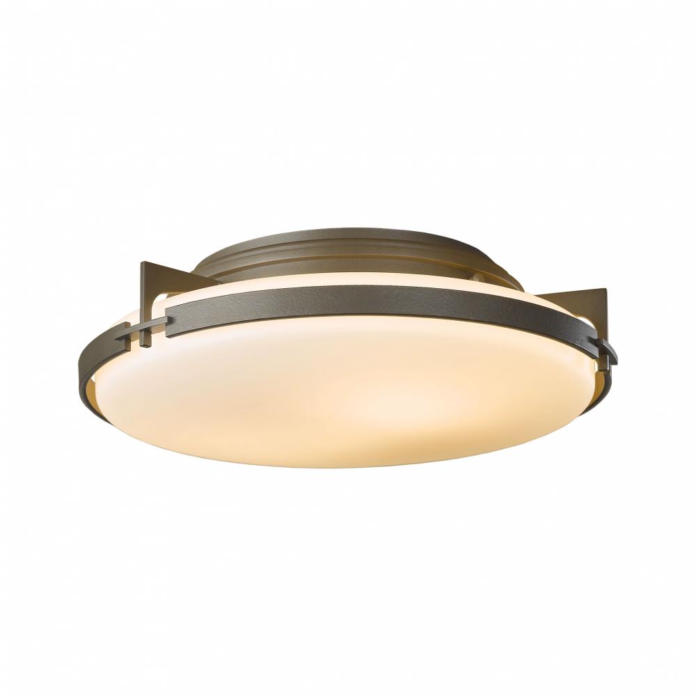 Thin metal arms secure the band circling the glass oval. The simple, minimalistic design of our ceiling light means it plays well with the designs of a wide range of spaces.