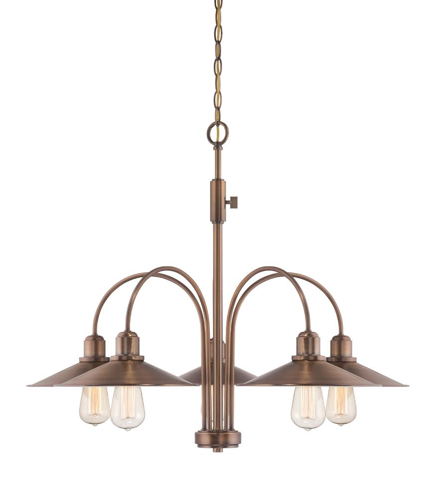 Newbury Station chandeliers feature the classic lines and shapes of an industrial era that has retaken hold in today's home interiors. The classic Edison filament style lamp adds additional warmth and appeal. These fixtures are built with a protective old satin brass finish over a steel construction to look great and last for years to come. They come with all the hardware you need for easy installation.