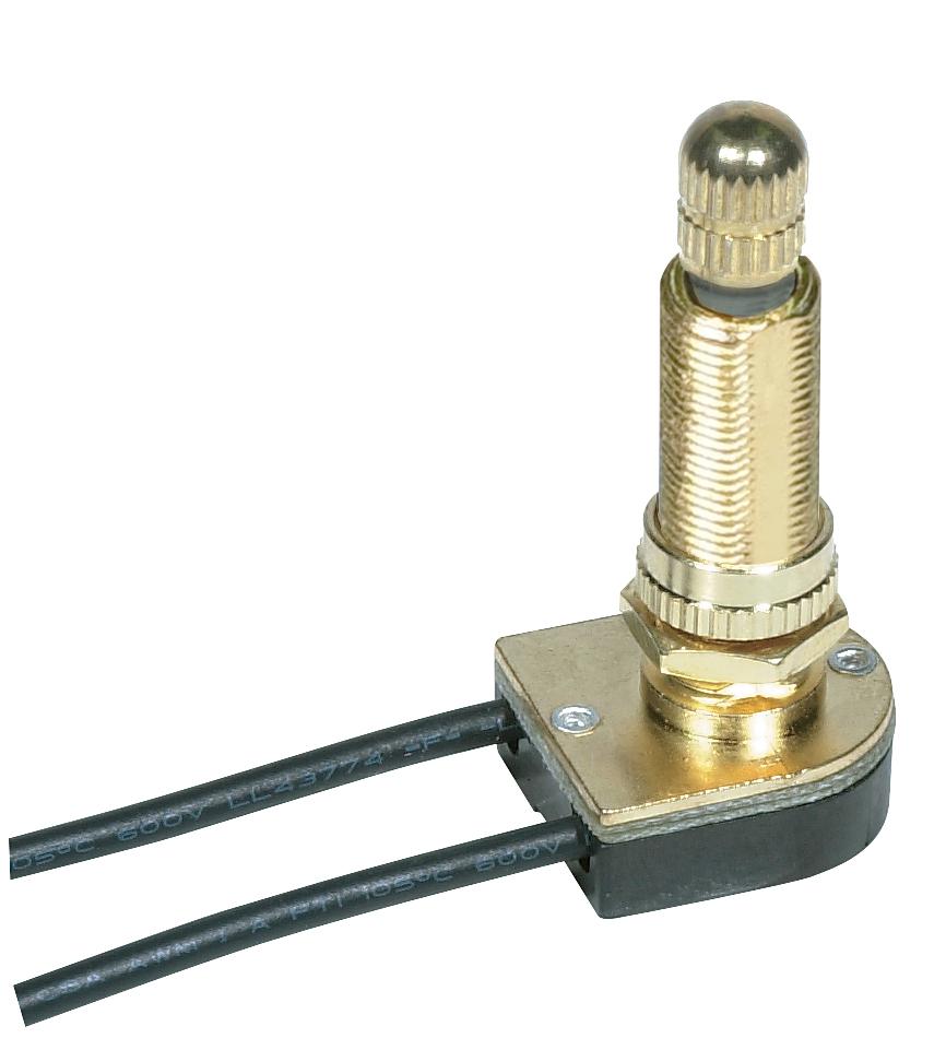 On-Off Metal Rotary Switch; 1-1/8" Metal Bushing; Single Circuit; 6A-125V, 3A-250V Rating; 6" Leads; Brass Finish