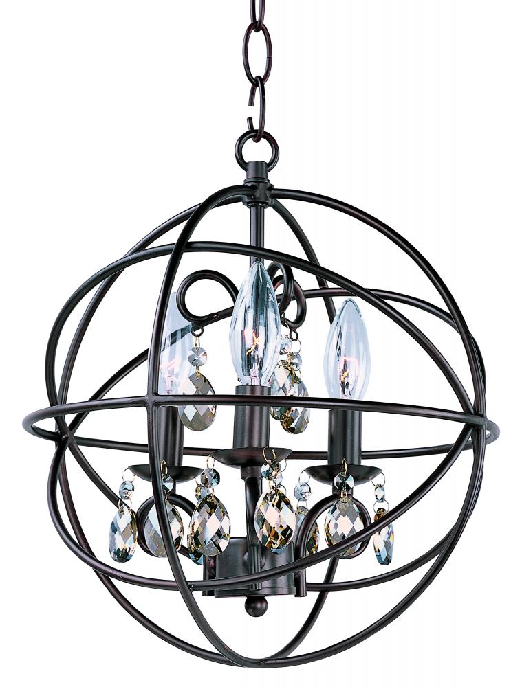 A spherical frame of metal surround a simple line chandelier draped in crystal for a transitional style that fits any interior design. Orbit is available in 2 sizes and 2 finishes, Oil Rubbed Bronze with Cognac crystal and a combo finish of Anthracite and