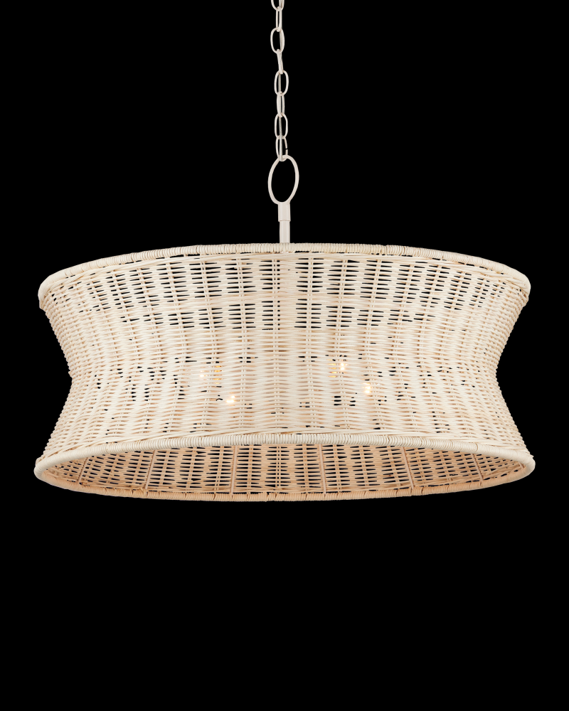 Lightening the profile of the Phebe Small Chandelier is the vanilla finish on the hardware and the bleached wicker shade. This beige chandelier exemplifies the hallmark of artisanal fixtures, with a design that highlights a keen understanding of finely woven natural materials. Adjustable from 26" to 93.5" with use of included chain/rod kit/cable. If your space calls for a longer drop, additional chain/rods/cable is available for purchase.