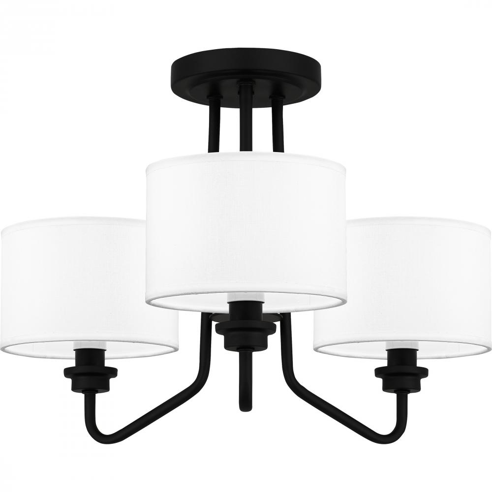 Textured white linen drum shades give Ainsdale a soft touch. Simple, clean lines add visual interest in either a matte black or painted brass finish. With its versatile styling, the Ainsdale semi-flush mount is the perfect option in a variety of entryway,