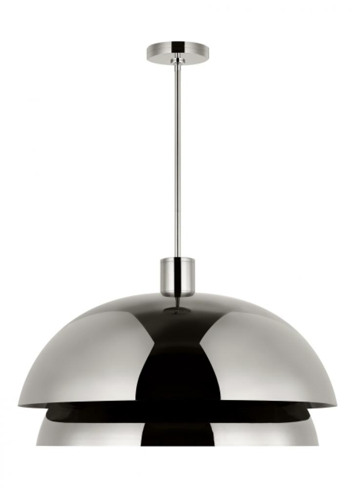 The Shanti by Sean Lavin is a statement-making piece you'll want to set the tone in your foyer, living room, or dining room. The design presents a fresh visual you can indulge in from any angle you look at it. Hanging from the end of a simple stem is a set large spun metal-shaped shades. Light sends the piece to another level as the multi-directional bulbs glaze the structure while creating a warm, radiant glow. Integrated LED modules bring the metal to life as they emit a bright and even layer of light through the top and bottom of the piece.