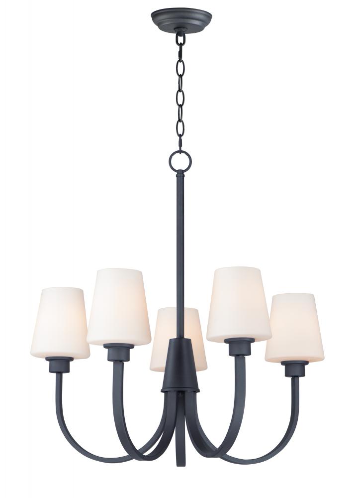 Graceful arcs of rectangular tubing transition to round cups that support tapered Satin White glass shades creating a crisp and clean transitional design. The frame is finished in your choice of Satin Nickel or Black which bridges modern and transitional d