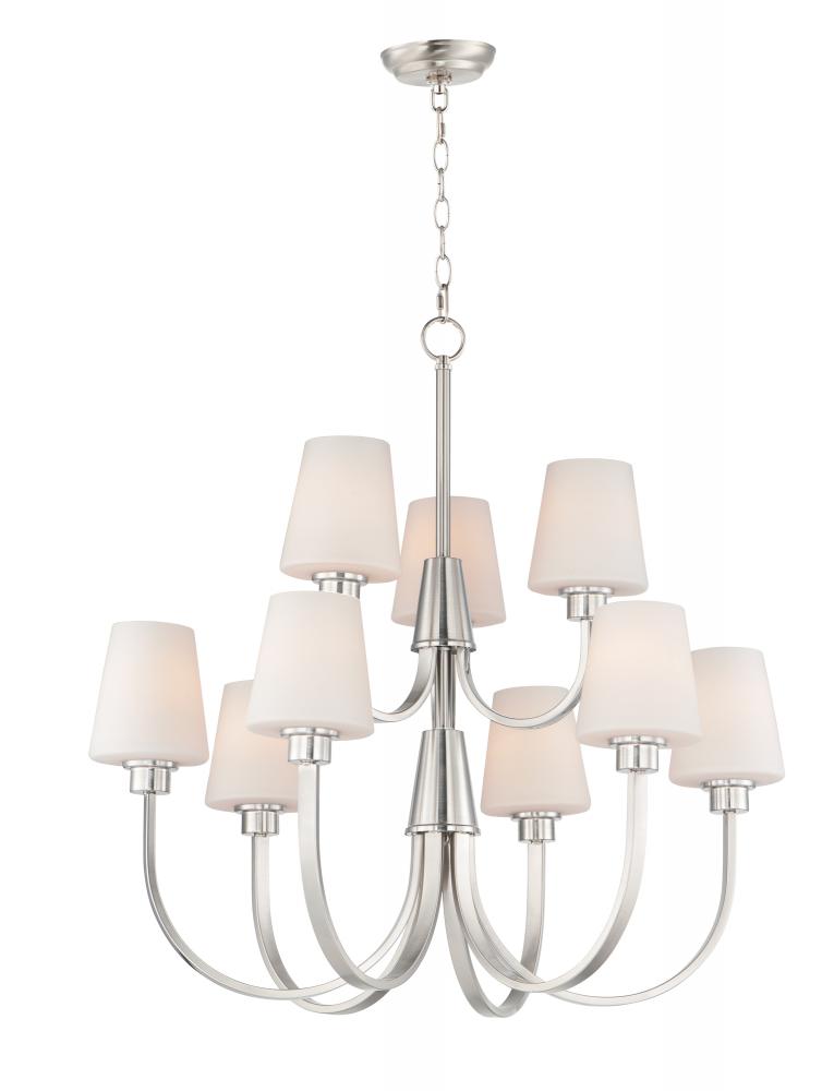 Graceful arcs of rectangular tubing transition to round cups that support tapered Satin White glass shades creating a crisp and clean transitional design. The frame is finished in your choice of Satin Nickel or Black which bridges modern and transitional d