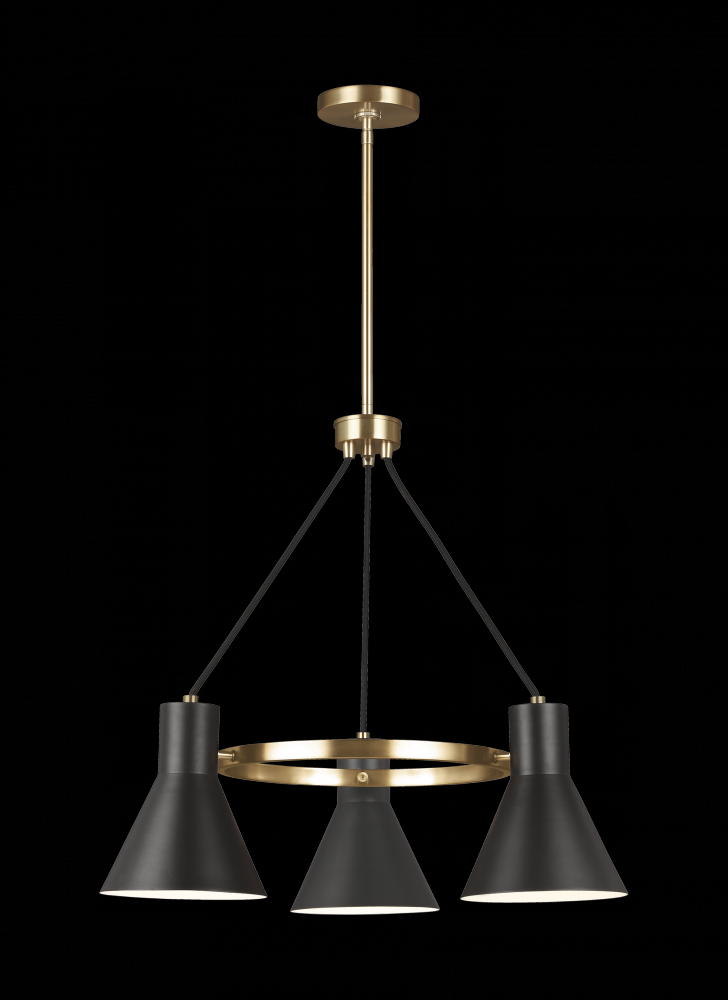 The Towner three light single tier chandelier in satin brass is the perfect way to achieve your desired fashion or functional needs in your home. The Towner lighting collection by brings mid-century, retro style to the traditional circular silhouette, creating a bold statement that would accent any space in your home. The conical light shades deliver a fun design statement along with the textured cloth cords, which are adjustable for leveling. These fixtures are ideal for dining room lighting, living room lighting and kitchen lighting. The assortment includes three-, five- and seven-light chandeliers, three- and five-light cluster pendants, eight-light island pendants, one-light mini pendants, and one-light wall sconces. The Towner Collection is available in two finishes, Satin Bronze and Brushed Nickel to complete the look. All fixtures are available as ENERGY STAR®-qualified and California Title 24 compliant.