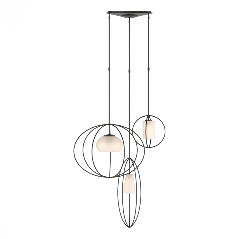 Why settle for one note, when you can have a symphony of style? Our Treble combines the Tempo, Cadence and Rhythm pendants all in one fixture. Gentle curves of steel form a trio of cage-like geometric shapes and are suspended from a triangular canopy mount.
