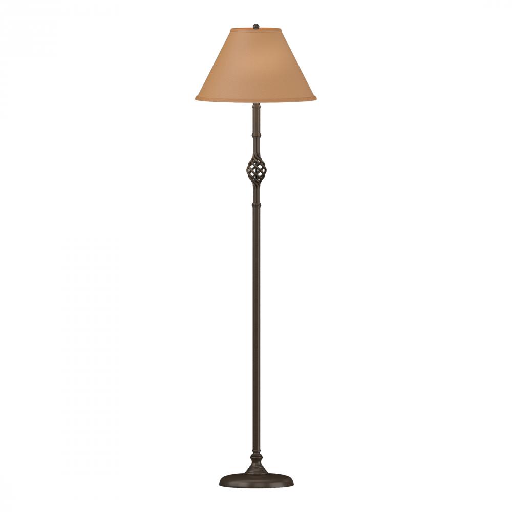 A traditional design with a literal twist, the modern blacksmiths here at Hubbardton Forge have crafted the famous twin basket design of yesteryear to adorn today's rooms. This floor lamp displays forging at its finest with the hand-worked steel basket.